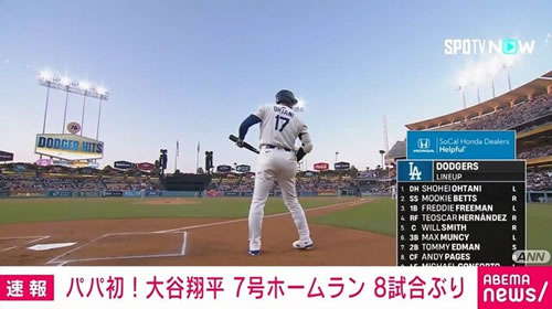 今日は 先ほど 大谷翔平選手 パパ初HR