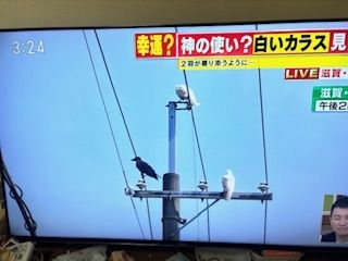 親子で 5羽 いて 子ガラス2羽 が 白いカラス