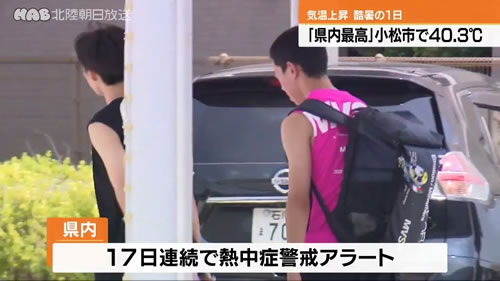 あっ 今の情報で 石川県小松 で 40.3℃ と言う事
