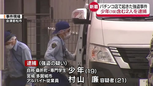 福島で パチンコ店 2800万円強盗