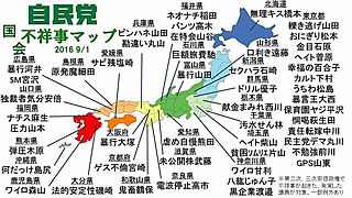 葉羽 「自民党不祥事マップ」なるものをたまたま見つけたので引用してみましたが、たくさんあったんですね~! 僕自身は現時点で安倍総理に替えられる人物はいないと考えていますが、末端(いや中枢も?)では酷いことになっています。政権交代可能な野党の不存在は痛いですね。