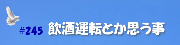 葉羽 飲酒運転してしまう人の心が分かりません。やったことないしやろうとも思わないし、まあ、公務員の場合、一発で人生を無くしちゃいますから。でもあるんだよね~公務員の飲酒事故。同じ部局の幹部がテレビで雁首揃えて「再発防止」を誓った翌日にまた・とか。もう笑うしかありません。