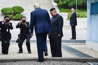 結果的に トランプさん は一人で スタスタ と境界線まで向かい。