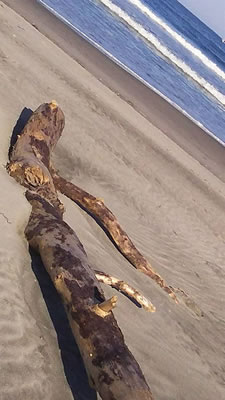 この流木はあのときの木でしょうか? 海に向かって手を合わせます😢