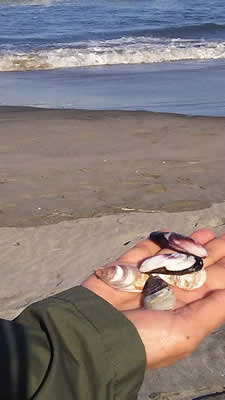 ムール貝より薄い貝でした。これが育つとムール貝になるのかな?シーグラス探したのですがなかった😆