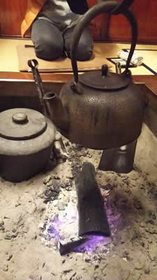 (Chaco)鉄瓶に炭火で沸かしたお湯が最高に美味しいのよね! 火消し壺も、整えていない灰も さりげなくていいわぁ😍�