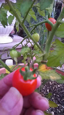 Honchi 今年初めてシリーズ✨ トマト🍅初収穫✨ 遅咲き薔薇ジュリア、 咲き始め✨ ミニパプリカの花が咲きました✨ 初さくらんぼ🍒