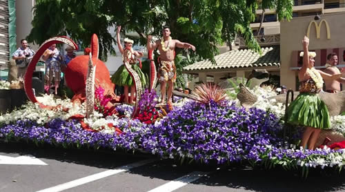 ハワイ三日目は、偶然にも今日はハワイフェスティバル フローラルパレード。