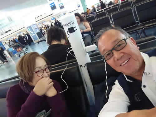 台風や即位の礼で荷物送るの大変でしたが、無事チェックインしてこれから約12時間恐怖のフライト🛫です。