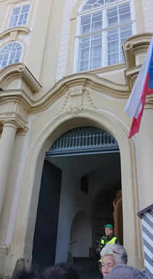 じつは出発間際に旧王宮が建国記念日のミサの為入館出来ないと聞かされ、聖ヴィート教会も入館出来ないのではと心配しましたが大丈夫でした👍 プラハ城の門の衛兵交代式を見て聖ヴィート教会へ😍 下はプラハ城に入る門↓