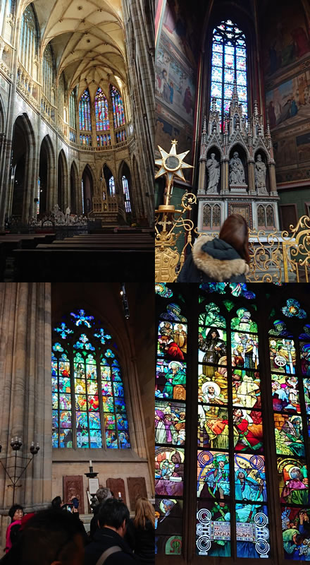 そして今回一番見せたい聖ヴィート教会の内部。ミュシャのステンドグラス。