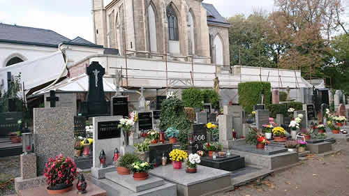 このお墓の下にはまだたくさんの人骨が埋められているそうです。 狭い墓地教会、聖地から持ってきた土を撒いたところ我も我もと墓を壊しては亡くなった人を埋葬し、沢山の人骨が埋まっているようです😅日本の無縁仏の墓石が集められているようなものかしら⁉️ ちょうど日本でいうお盆でお花がたくさん飾られていましたが,やはり菊なんですね❗