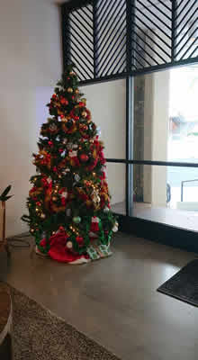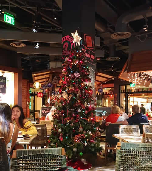 ロイヤルハワイアンセンターのツリーにはサンタさんがい ました✨