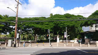 ハワイ大学の正門・・昨日の寝不足のせいか正門通りすぎて裏門で降りました😅