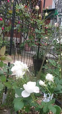 別の薔薇 ヒマラヤンムスク・アンジェラ・グラスフォーエバーが咲き始めました✨旦那様~雨が多いので黒点病やうどんこ病対策しっかりお願いします🙇♀️⤵️