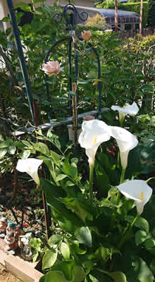 今年はカラーの花がたくさん咲いてくれました。カラーは次々に花を咲かせ切り花デモンストレーションもつので私は好きです😍なんのお手入れせずとも咲いてくれたカラーは私向き😝