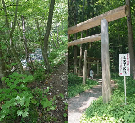葉羽 最後の鳥居の向こうに滝が見えてきました。