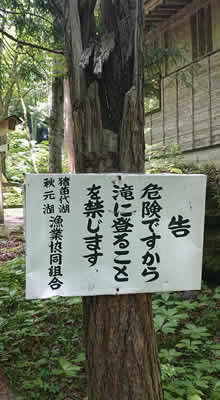そだね🤣 少し進むと「告」の看板・・滝に登る人いるのね😱