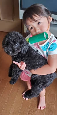 「鬼滅の刃」。とうとう ねずこになった孫😅 愛犬バロンはいじくり回されて孫が帰った後はいつもグッタリです🤣