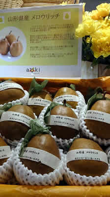 色々な果物が並んでいます。 メロウリッチこれ食べたことないけど洋梨🍐好きじゃないからリッチでも買わない😅 🍎シナノ・スイート高い😲❗ 大好きな🍉スイカ 冬食べたいときはここで買える~🎵 待っている時間も果物に囲まれて幸せ~😍