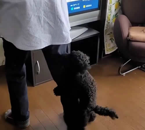 (伸一)うちのワンちゃん思い出すだヨ❣️ いるときはオイラの動きを目で追っていて、ちょっとでも姿が消えると確認するまで追ってくる❣️ 今は天国でミィと一緒にオイラを見張ってるだヨ😅