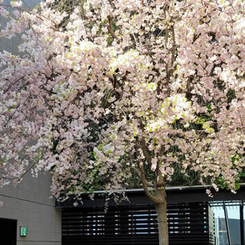 東急プラザの屋上の桜 満開、あまり知られていないのか一人占め、マスクとっての写真が撮れました