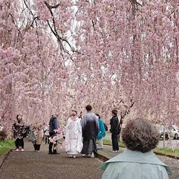 欲張りお花見🌸でも我が家からだと米沢通って1時間半で着きました。 日中線の垂れ桜、葉っぱも見え始めてます。前撮りの撮影をしている新婚さん、若いっていいなぁ~❤️