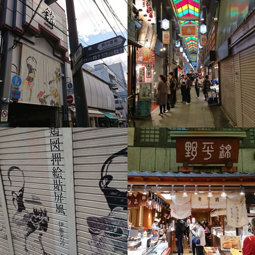 さて、若冲の生家があった錦天満宮近くの錦市場。あちこちに若冲の絵を模写したものがありました。やはりあんなに細かいところまで描けるのは果物やお野菜の問屋の息子だったせいもあるのかも😃💡