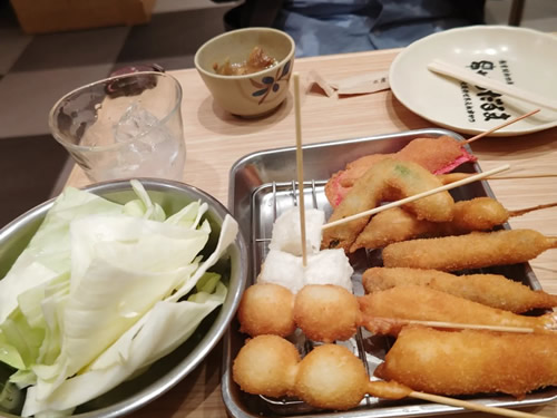 大阪の名物の一つ、串かつ🍤🍺、タイミング合わずになかなか食べられなかった。