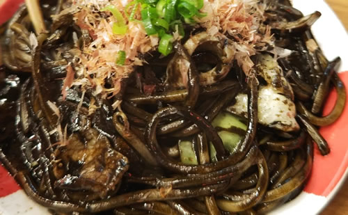 とうとう帰る日、長いようであっという間でした。毎日食べてばかり 今日はたこ焼き、そして蛸墨のブラック焼きそば。