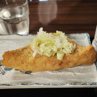 お待ちかね、三角油揚げ。今年ネギ高いけれどこんもりネギ熱々パリパリめちゃ美味しかったです😋
