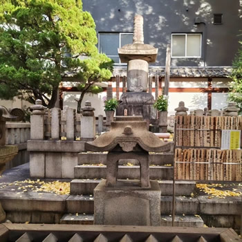 最後は夕食の場所のそばに建つ本能寺に案内してもらいました。ビルとビルに挟まれた信長霊廟、石塔の下には信長が使用していた刀が眠っているそうです。