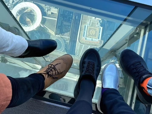 (Chaco)✨いいねぇ✨☺️ 私 東京タワー🗼でさえ下を見てゾクッとしたのに…💦 (スカイツリーはあまりに混んでいて最上階までは行けず😥) それにしても、皆さんファッションに合わせて靴を替えておられるところが 何とも素晴らしい✨