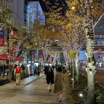 梅田のイルミネーションは東京のシャープな光と違ってなんとなく温かみがある光でした。