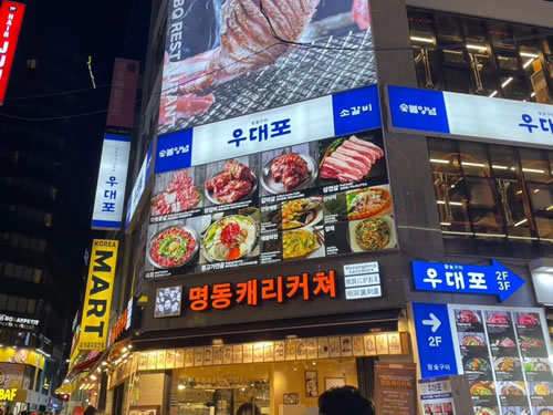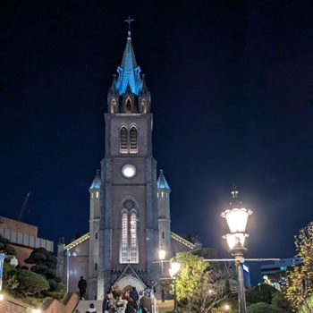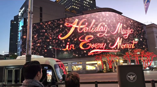 歩いて新世界百貨店のプロジェクションマッピングを見て明洞聖堂を観てからホテルへ。