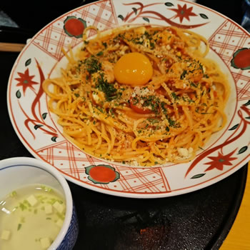 早めの夕食はパスタ🍝、デザートまで食べて、今回も食べてばかりの旅でした🤣