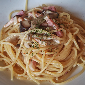 コレがコルティーレ名物のワンプレート。そしてパスタがとても美味しい。茹で加減が最高。