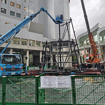 外ではクリスマスツリー設置工事、出来上がりを見たいと思うくらい大きな骨組みでした