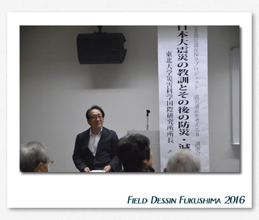 ふくしま震災遺産保全プロジェクトアウトリーチ事業震災遺産を考えるU いわきセッション 「津波を科学する―そのメカニズムから防災まで―」 講演会「東日本大震災の教訓とその後の防災・減災の考え方」に参加して今回の講演をうけて「防災」の「災」とは何か考える。他県の地震・津波の報告を見て「なるほど」と、他県ではその後の防災に対する前向きな改善策が検討でき、その実現に向けて「復興」していくのだろうと感じた。確かに地震・津波は「災」だった・・・のだ。 福島における複合災害は「災」なのだろうか? 「災」ではなく「厄」という匂いを感じる。 放射線のことだけでなく、現代の「厄病」そのものを抱え込んでしまった。 今は「力(エネルギー)」が欲しい。体力ならぬ「心力」とでも言おうか・・・。いにしえの人々がその住まいに灯した炎のようにな・・・