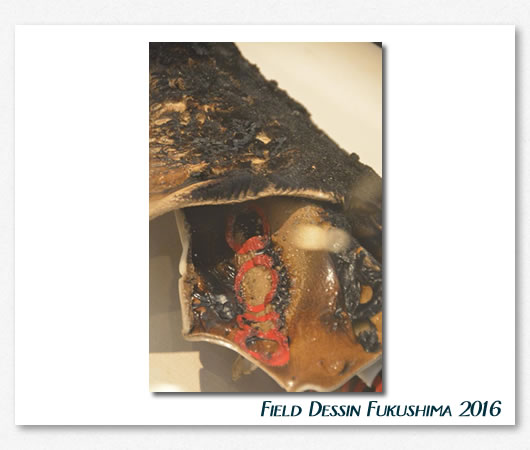 焼けて 縮んだ