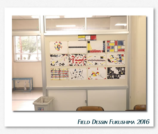導入でモンドリアンの「コンポジション」「ブロードウエイブギウギ」を鑑賞してから制作。