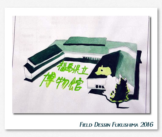 「福島県立博物館のシンボルマークのアイディアを考えよう」という課題(中学3年・2時間)県博の概要や展示物を紹介してデザインではなく、マークの「アイディア」を考える授業。