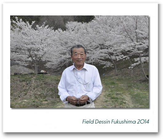 今飯舘村の桜は満開。この桜の森を一人で作り続けた飯舘村の会田征男さんに会った。桜も会田さんも私たちを歓迎してくれた。奥さんも”桜のおふかし”を拵えてくれた。春だ・・・。うららかな春だ。2歳〜3歳の若木も少しずつ花をつけている。会田さんが「あと30年したらどうなんべな・・・見事だと思うよ。その頃はみんな帰ってきられるし、したらみんなで宴会やんだよ。見事だよ」と。