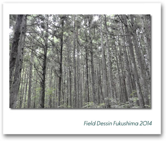 大熊町小塚の「杣人(ソマビト)」高橋清さんの案内で大熊の「森」に入る。地元の人にもあまり知られていないらしいが、ここにはかつて(第二次世界大戦前後の時期?)日本唯一の「製炭試験場」があったそうだ。当時ここが「木炭」を生産するための研究・研修拠点となっていた。日本全国から「木炭生産」による山での生き方をここで学ぶ人たちが集結した。当時の日本のエネルギー産業を支えるため、必死な研究がここで行われていた。山道を進むと縄文の遺跡もある。原発云々の時代の前からここにはある意味「日本のエネルギー産業への使命」があった。今は防護服を身にまとい散策しなければならない場所だが、そのことがウソのように美しい森だ。