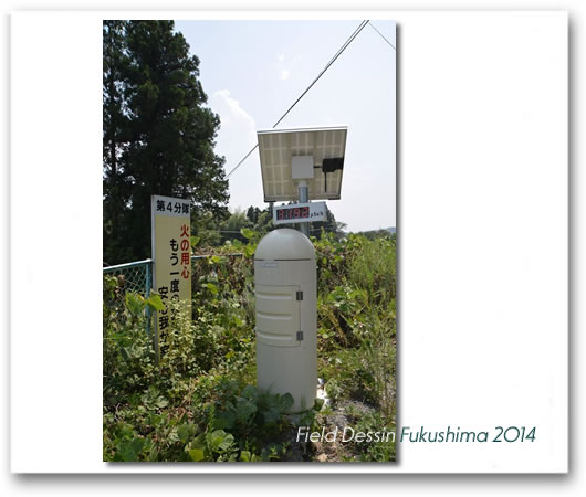 ここは3.1μSv/h 1メートル離れると4.2μSv/h 10メートル範囲内最高は9.4μSv/h