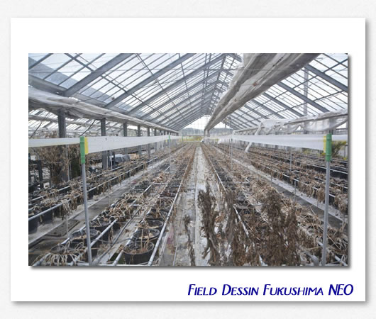 水耕栽培のハウスから生暖かい空気が流れてくる。