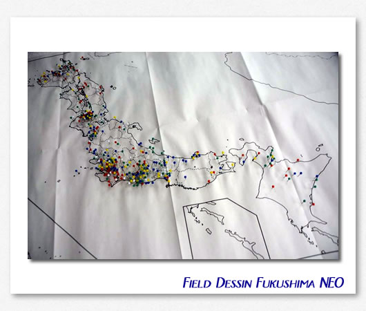 ※楢葉「おらほ亭」…壁の地図には、来客がどこから来たかピンを刺してもらっている。