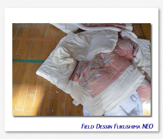 Field Dessin「布団」浪江町調査より (10キロ圏外小学校体育館調査)