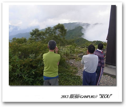 とにかく辛くて「あの山の奥にある山のあのチョット見えるのが切合だよ」と管理人の佐藤さん。