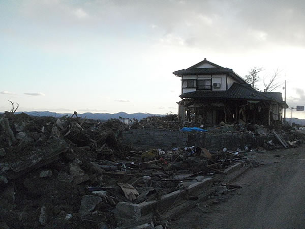 警戒地区に家があっと津波が無くても 地震で屋根の棟が落ちた家はよ、 家使えなくなるんだと 棟とこから雨水入んべ ほぉしてはぁ雨水落ちた畳に草が生えんべ 湿気ったらもうダメだょ 家さ帰ったら 座敷で牛がその草喰ってたんだと 考えらんに・・